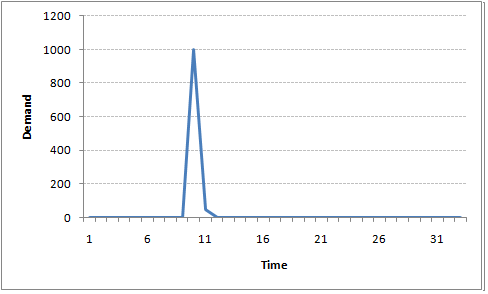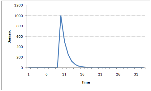For instance, let’s say x(t) is the number of juice bottles sold in a city on a particular day. During winters, very few vendors purchased juice bottles. Suddenly, on a particular day, the temperature rose and the demand of juice bottles soared to 1000. However, after a few days, the climate became cold again. But, knowing that the people got used to drinking juice during the hot days, there were 50% of the people still drinking juice during the cold days. In following days, the proportion went down to 25% (50% of 50%) and then gradually to a small number after significant number of days. The following graph explains the inertia property of AR series: