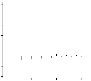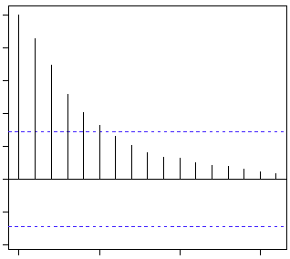 The first question can be answered using Total Correlation Chart (also known as Auto – correlation Function / ACF). ACF is a plot of total correlation between different lag functions. For instance, in GDP problem, the GDP at time point t is x(t). We are interested in the correlation of x(t) with x(t-1) , x(t-2) and so on. Now let’s reflect on what we have learnt from the previous article. In a moving average series of lag n, we will not get any correlation between x(t) and x(t – n -1) . Hence, the total correlation chart cuts off at nth lag. So it becomes simple to find the lag for a MA series. For an AR series this correlation will gradually go down without any cut off value. So what do we do if it is an AR series?