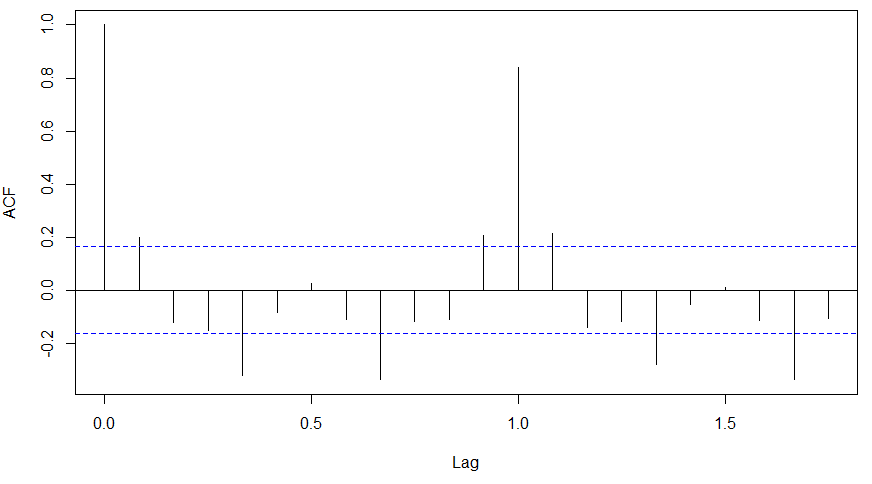 [stextbox id=”grey”]acf(diff(log(AirPassengers)))