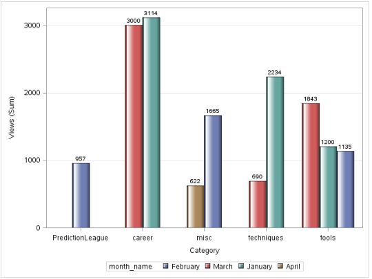 vbar category/ response=views group = month_num groupdisplay=cluster datalabel