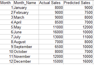 Objective: We want to compare the projected sales with the actual sales for different time periods.