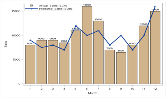vbar month/ response=actual_sales datalabel datalabelattrs = (weight = bold)