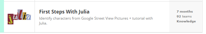Objective: This is a problem to identify characters on Google Street view picture using an upcoming tool Julia.