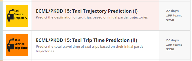 Objective: There are two problem based on the same datasets. You are given the controller of a taxi, and you are supposed to predict where is the taxi going to or the time it will take to complete the journey.