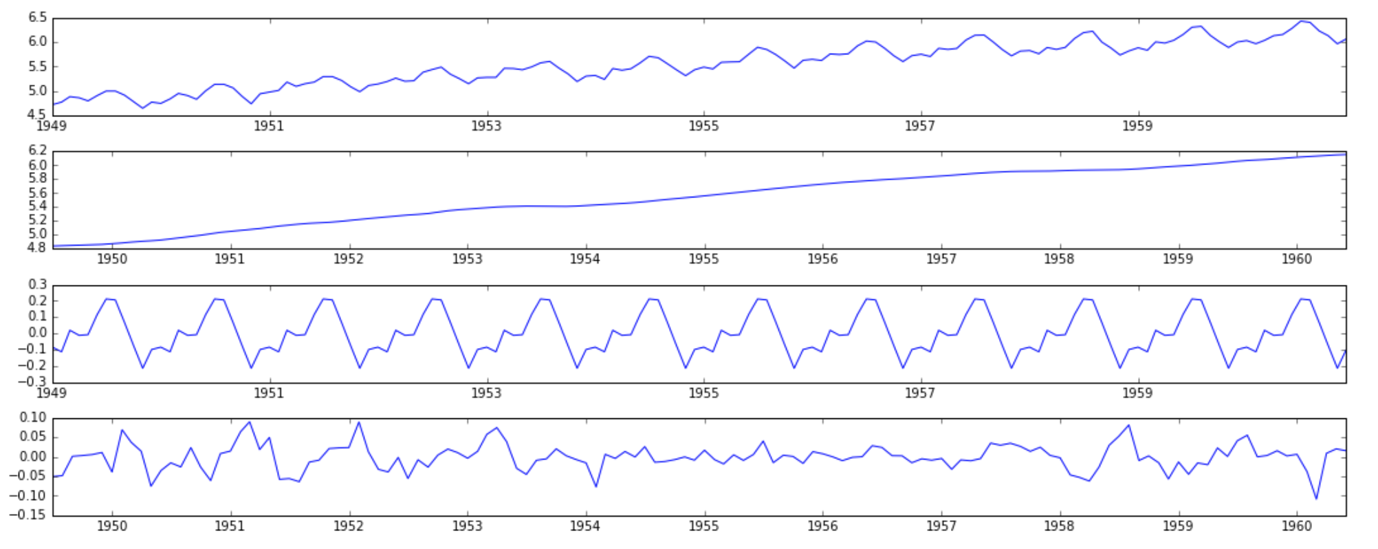 1. Trend – varying mean over time. For eg, in this case we saw that on average, the number of passengers was growing over time.