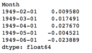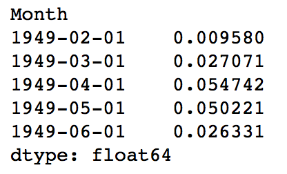 predictions_ARIMA_diff = pd.Series(results_ARIMA.fittedvalues, copy=True) print predictions_ARIMA_diff.head()