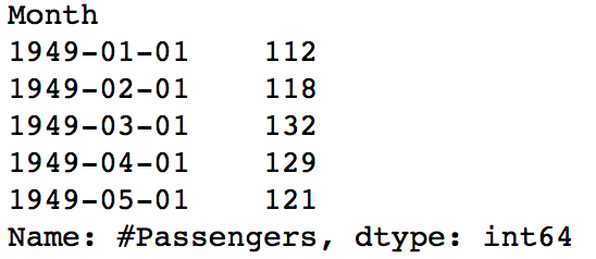 #1. Specify the entire range: ts['1949-01-01':'1949-05-01'] #2. Use ':' if one of the indices is at ends: ts[:'1949-05-01']