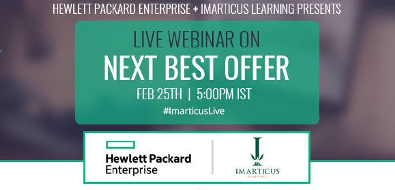 Imarticus Learning and Hewlett Packard Enterprise (HPE) present to you a joint webinar on the ‘Next Best Offer’ Analytics. In this webinar, we focus on how organizations connect with their customers continuously, resulting in a higher level of engagement. This creates multiple touch-points and opens up a wide-range of opportunities to cross sell various products and build a steady revenue stream.