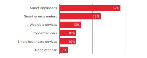 A survey conducted by KRC Reserach in UK, US, Japan and Germany the early adopters of IOT has revealed which devices are the customers more likely to use in the coming years. Smart Appliances like thermostat, smart refrigerator to name a few are most liked by the customers and are seem to change the way we operate.