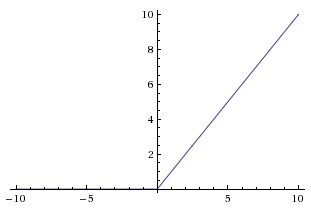 The output of the function is X when X>0 and 0 for X<=0. The function looks like this: