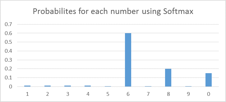 It’s very easy to see it this way – Suppose you’re trying to identify a 6 which might also look a bit like 8. The function would assign values to each number as below. We can easily see that the highest probability is assigned to 6, with the next highest assigned to 8 and so on…