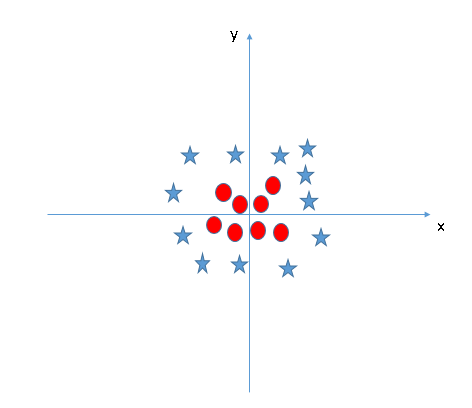 • SVM can solve this problem. Easily! It solves this problem by introducing additional features. Here, we will add a new feature, z=x^2+y^2. Now, let’s plot the data points on axis x and z: