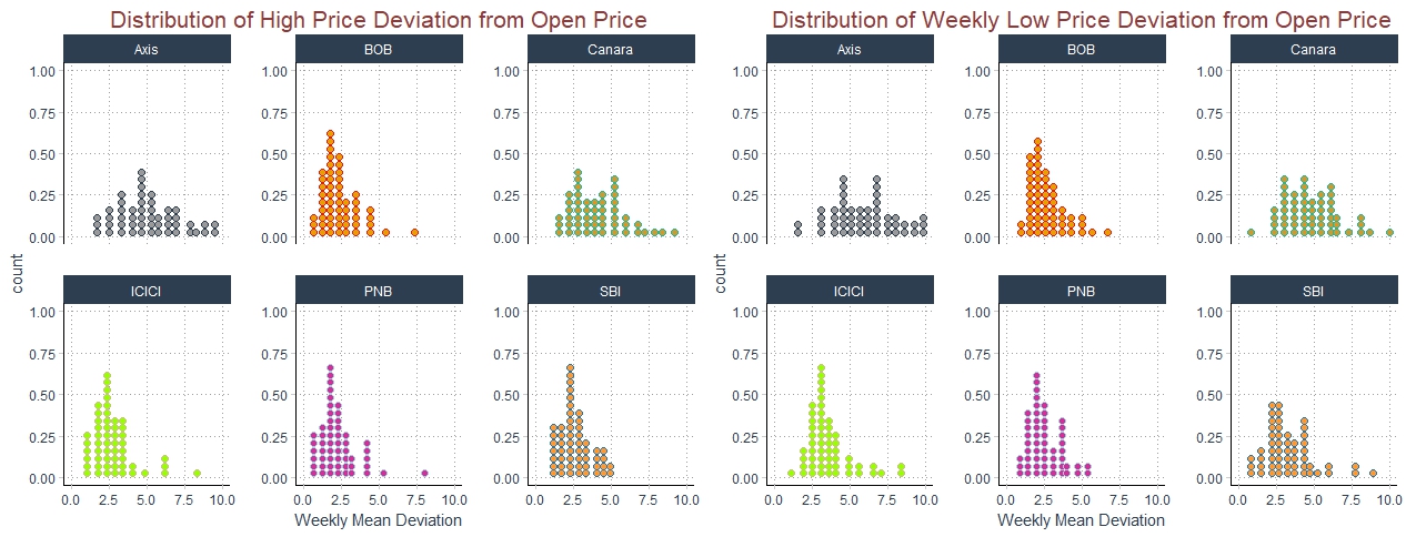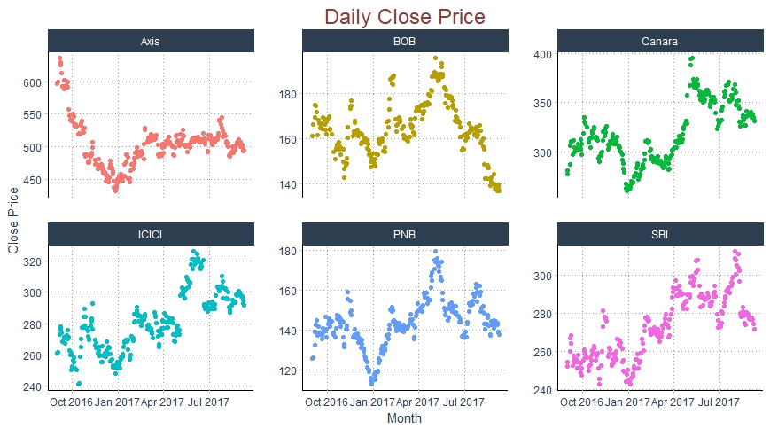 We have an idea of trend of the stock price, but not much is clear from the Monthly prices. Axis Bank share price improved in september and stayed at Rs750 for a month. whereas all other Banks were consistent and did not show much of volatility.