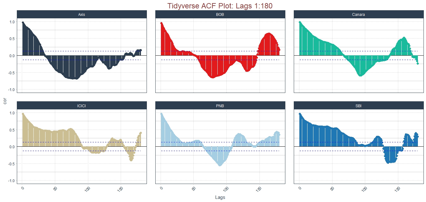 Here, “k” is denoted as lag. We will see the lag of 180 days period and see how stocks behave.