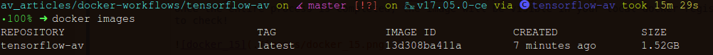 docker build -t tensorflow-av . (Note:-t is to tag the image as you wish too. You can version it as well, eg: docker build -t tensorflow-av:v1 .docker images to check!