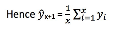 We take all the values previously known, calculate the average and take it as the next value. Of course it won’t be it exact, but somewhat close. As a forecasting method, there are actually situations where this technique works the best.