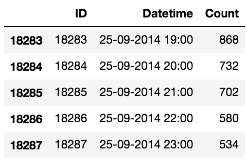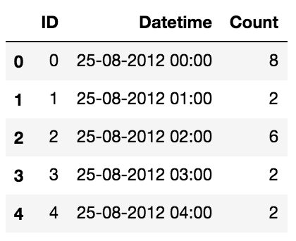As seen from the print statements above, we are given 2 years of data(2012-2014) at hourly level with the number of commuters travelling and we need to estimate the number of commuters for future.