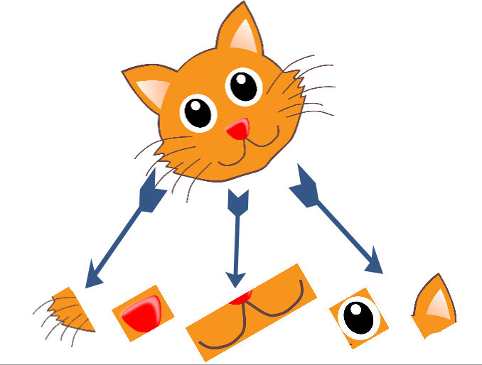 So let’s say this is the cat. How did you figure out that it is a cat? One possible approach could be to break it down into individual features, such as eyes, nose, ears, etc. This idea is summarised in the image below: