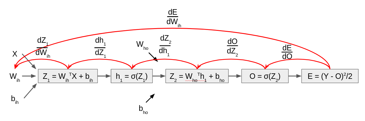 ∂E/∂Wi = [(Y-t). Y(1-Y).Wh].h(1-h).X